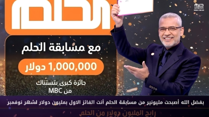 والله العظيم كنت أقول مستحيل أفوز، لكن اليوم أنا عندي شيك بمليون دولار بين يدي! شكراً مسابقة الحلم، أنتم غيرتم حياتي للأبد