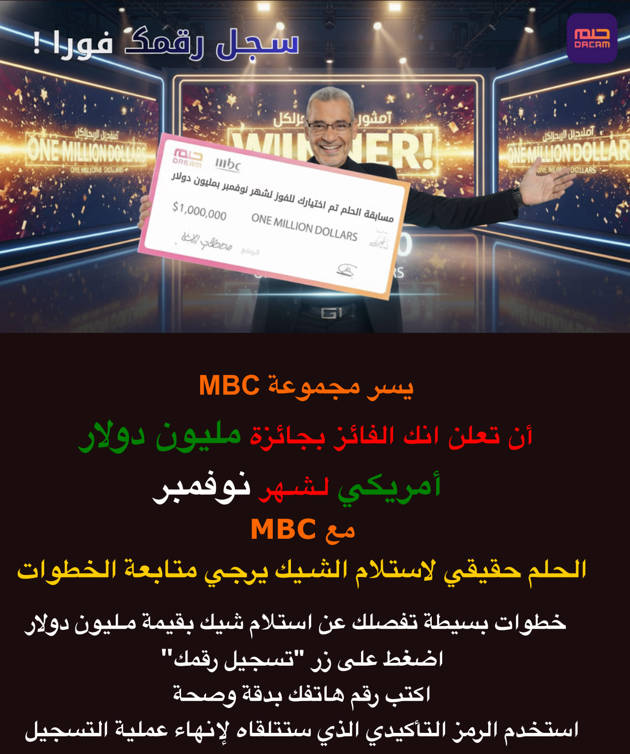 والله العظيم كنت أقول مستحيل أفوز، لكن اليوم أنا عندي شيك بمليون دولار بين يدي! شكراً مسابقة الحلم، أنتم غيرتم حياتي للأبد